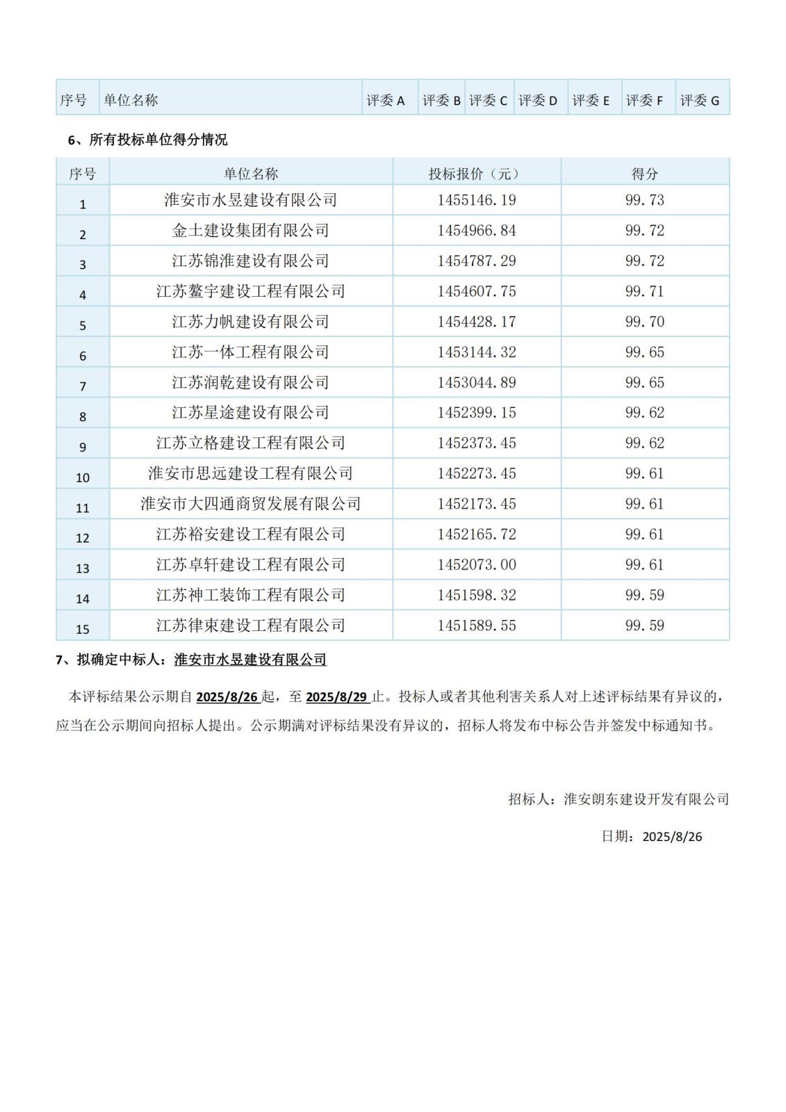 江蘇省工程建設(shè)項目評標結(jié)果公示