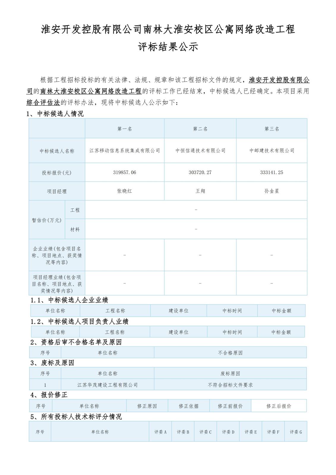 淮安開(kāi)發(fā)控股有限公司南林大淮安校區(qū)公寓網(wǎng)絡(luò)改造工程評(píng)標(biāo)結(jié)果公示